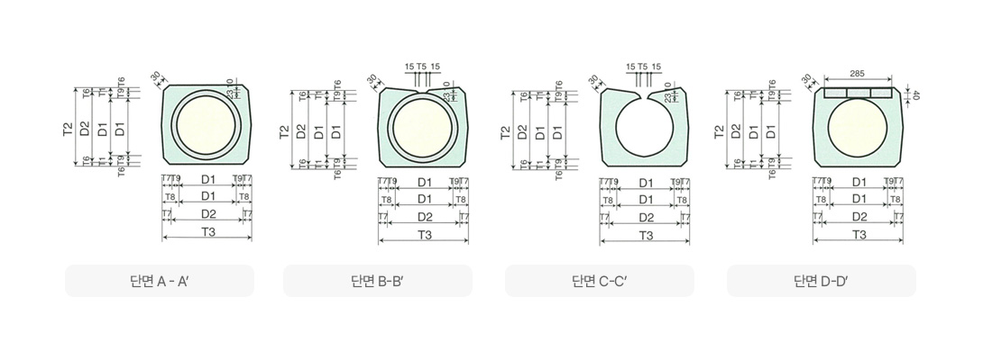 아름다운 자연과 함께 어루러진 새로운 환경을 만들어 갑니다. 상단부가 중심부를 향하여 경사면으로 되어 있어 기존 수로관보다 배수능력이 현저히 탁월합니다. 외관이 아름답고, 원심력 제품이므로 외압강도가 높으며 공기 및 공비가 절감됩니다.